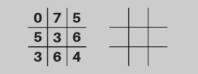 5. Fill in the right tic tac toe grid with the flip numbers.